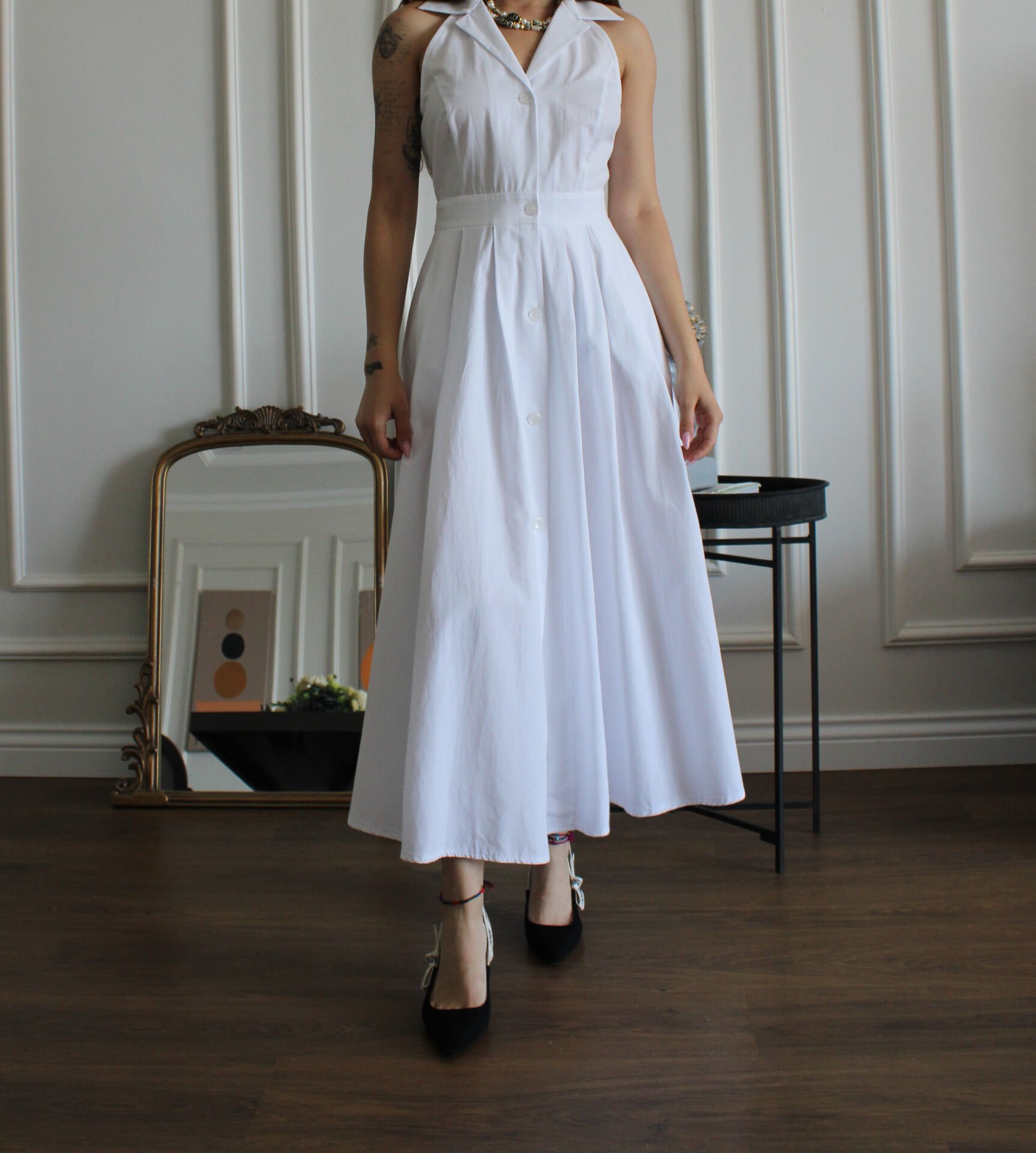 Beyaz Pileli Gömlek Elbise