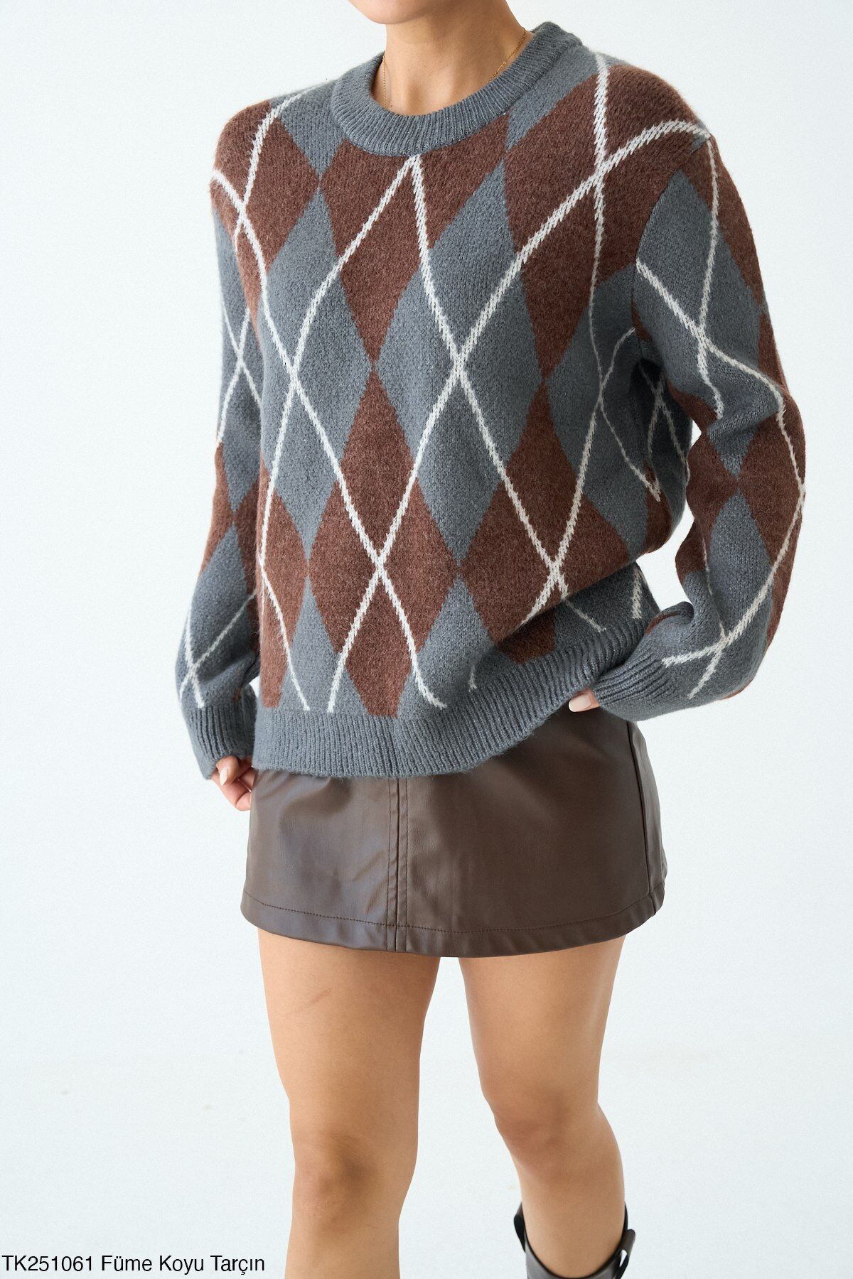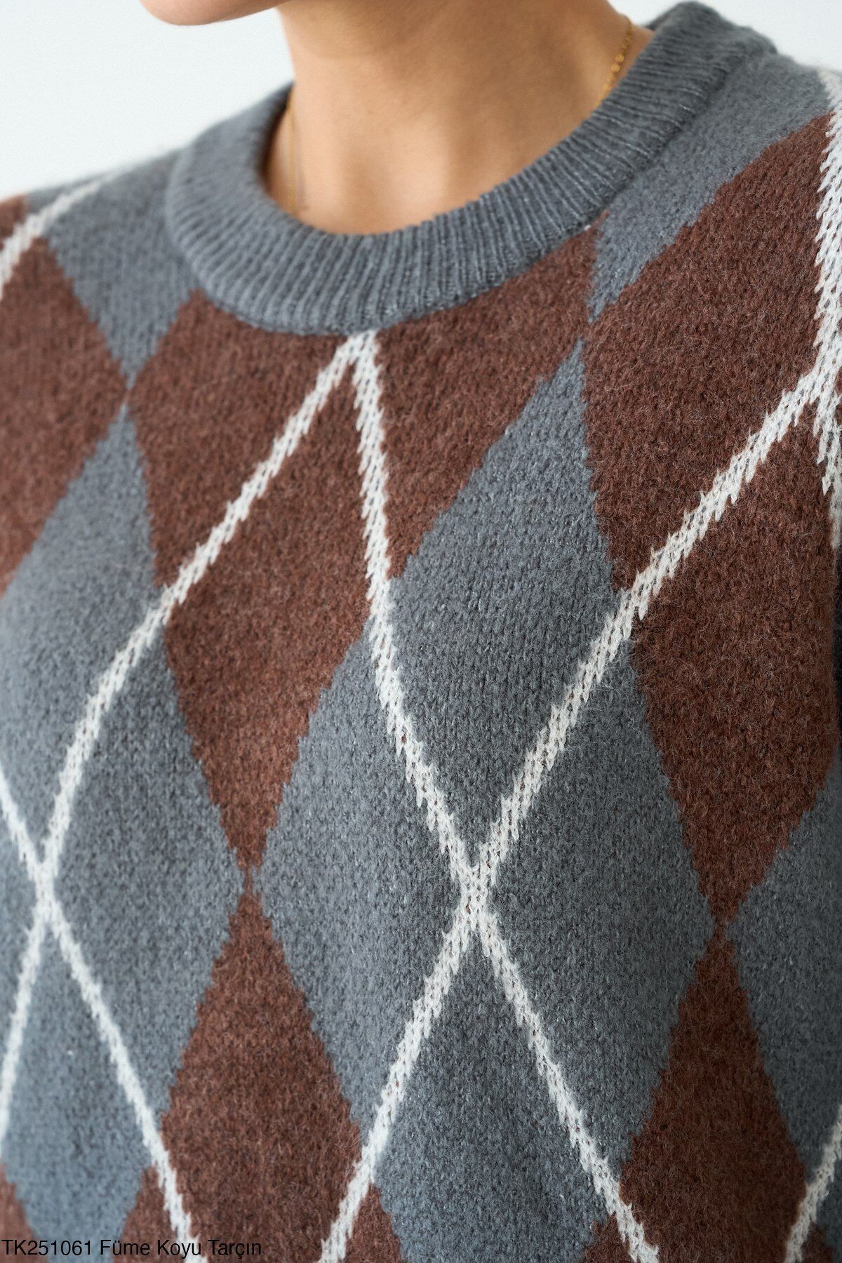 Bisiklet Yaka Baklava Desenli Triko Kazak Bklvkzk