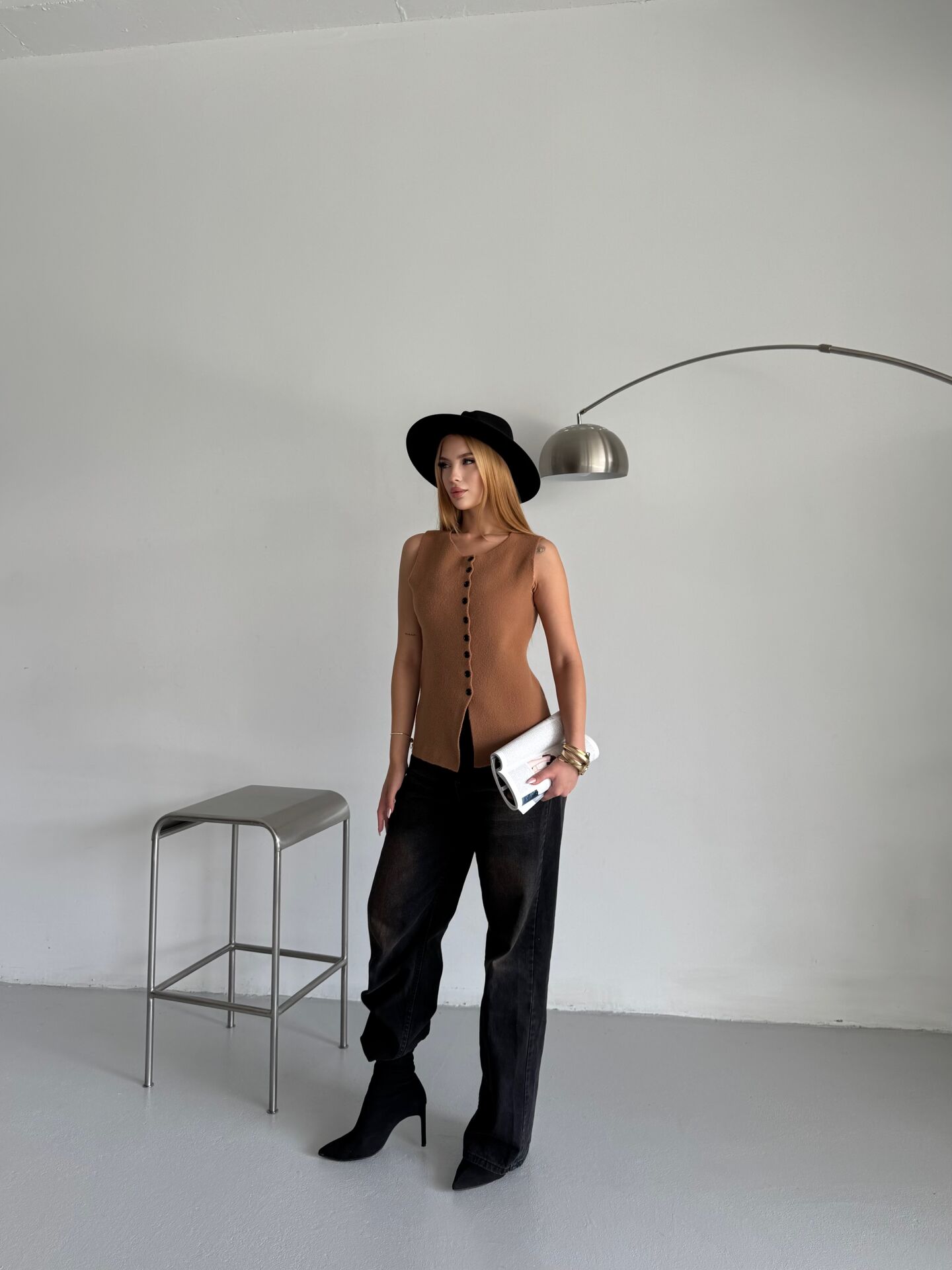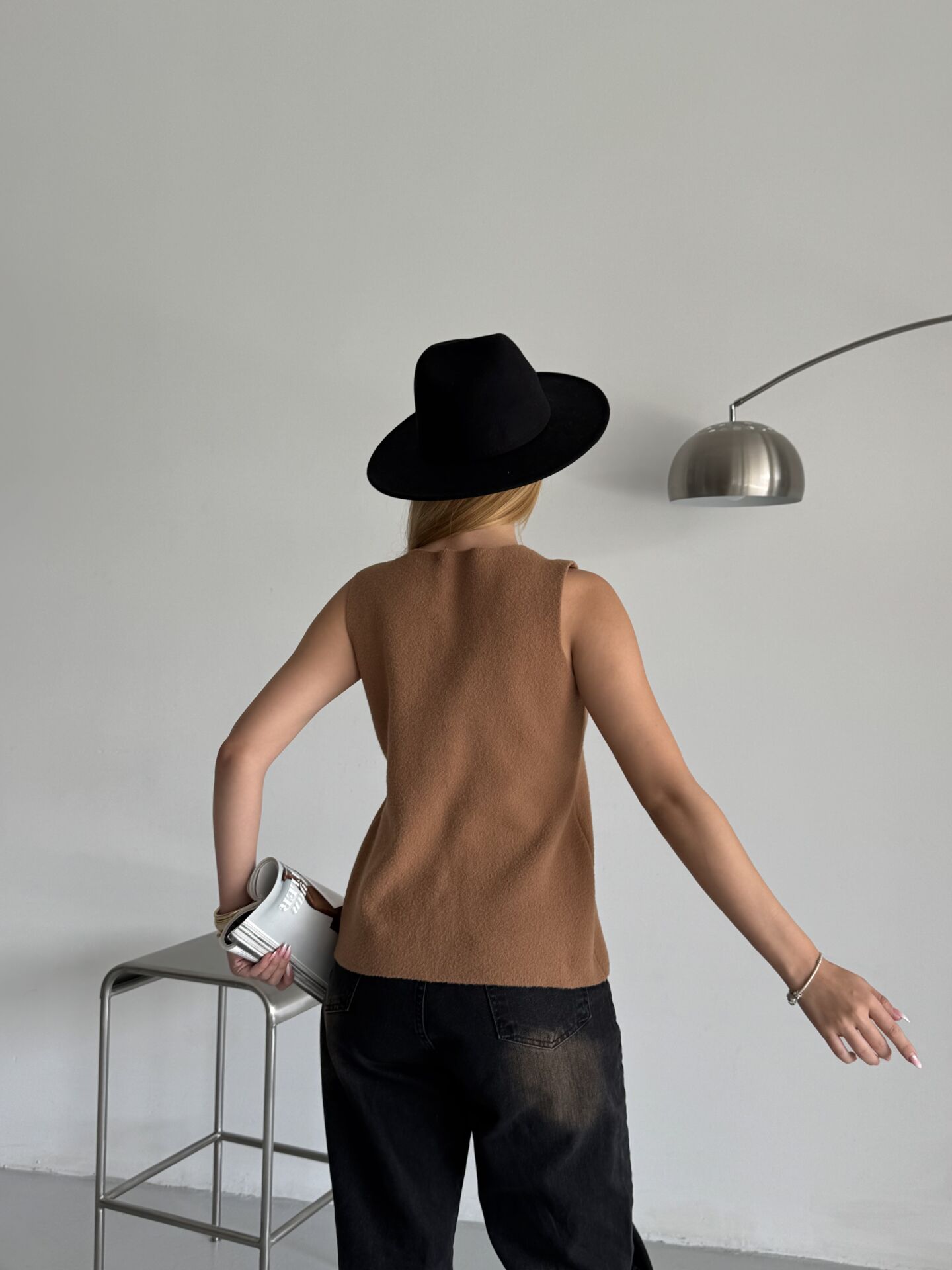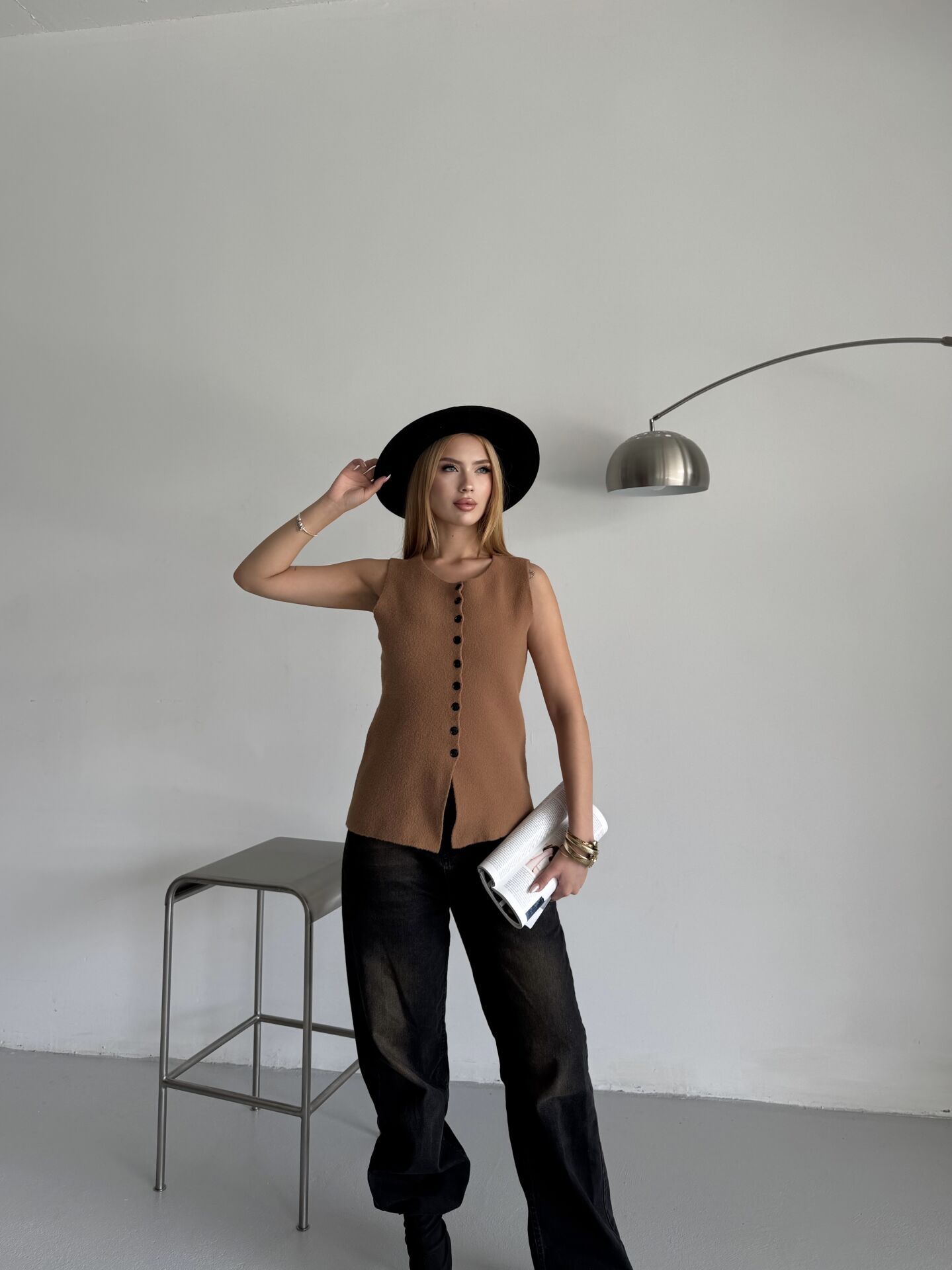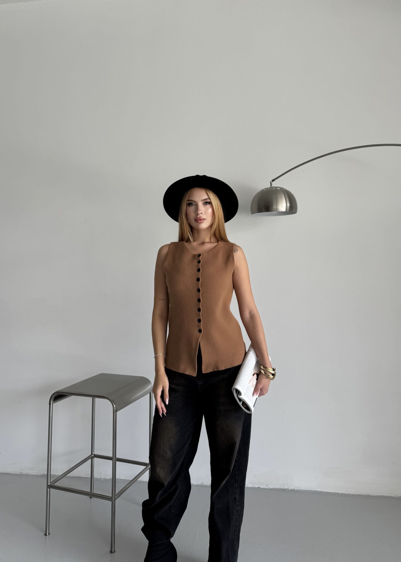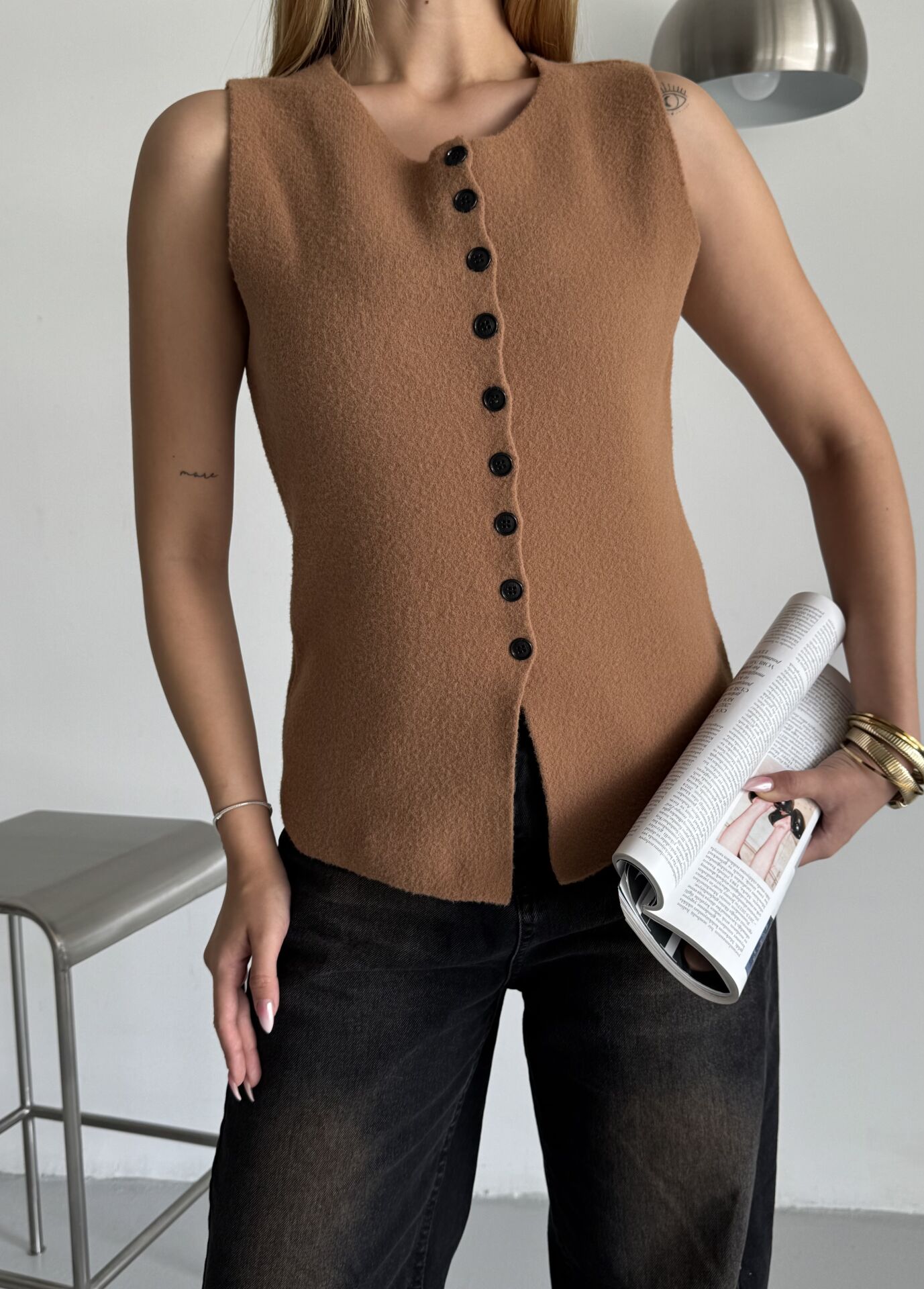 Camel Düğmeli Sıfır Kol Triko Yelek standart