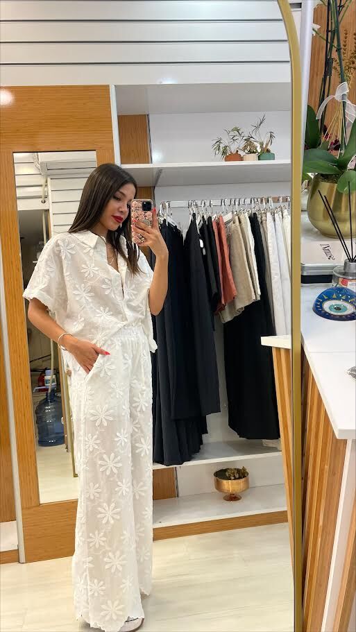 çiçek detaylı beyaz pantolon L(large) ÇÇKPNT_30524 çiçek detaylı beyaz pantolon L(large)