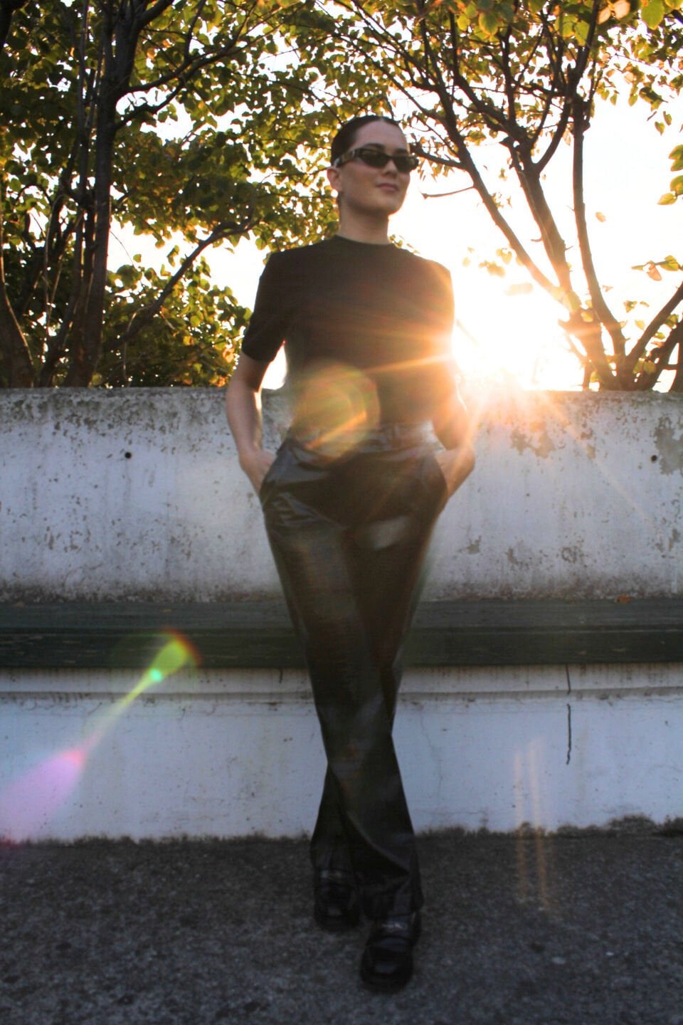 Kendinden Desenli Siyah Deri Pantolon Drsyhpnt