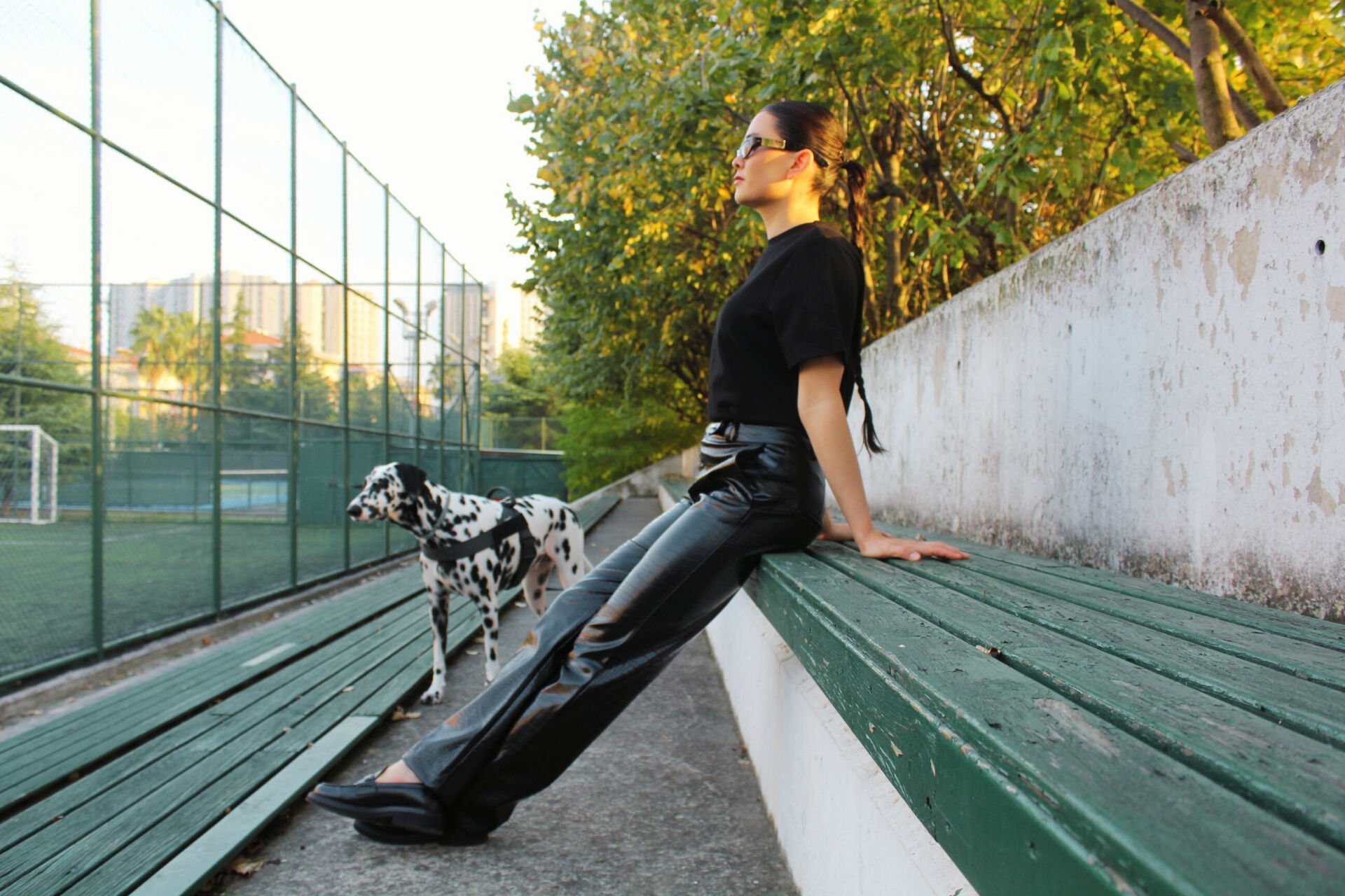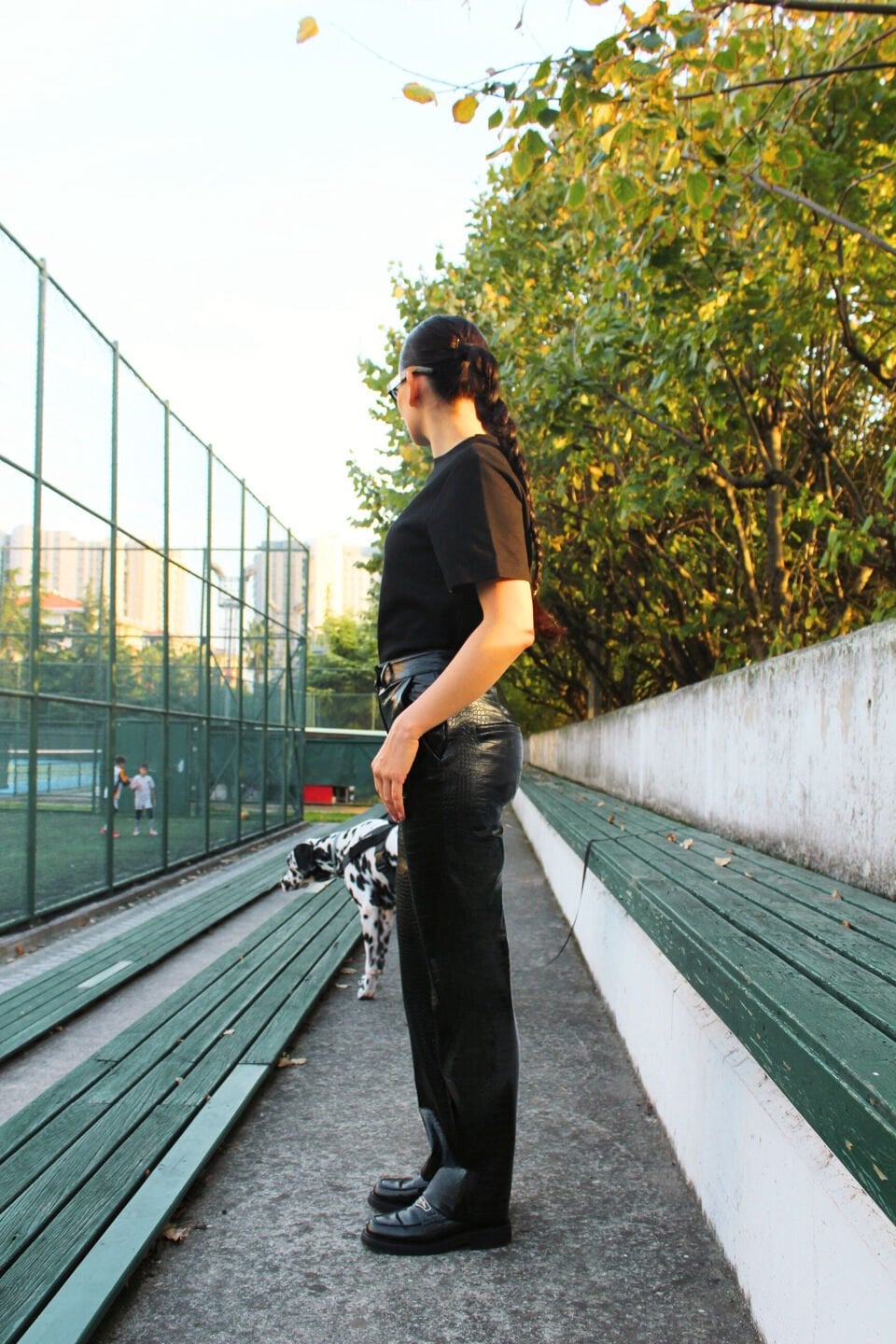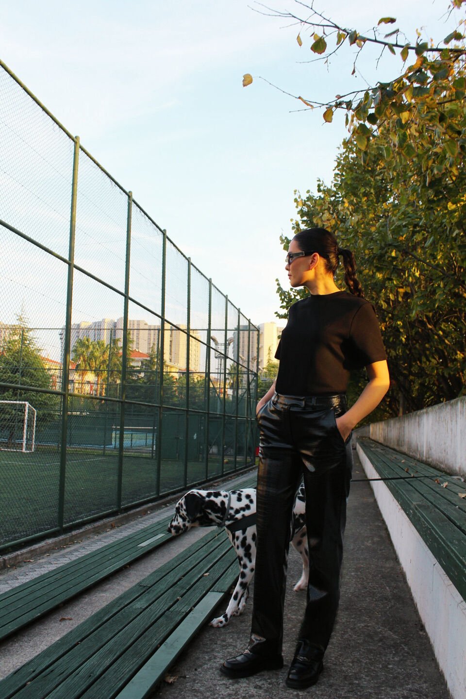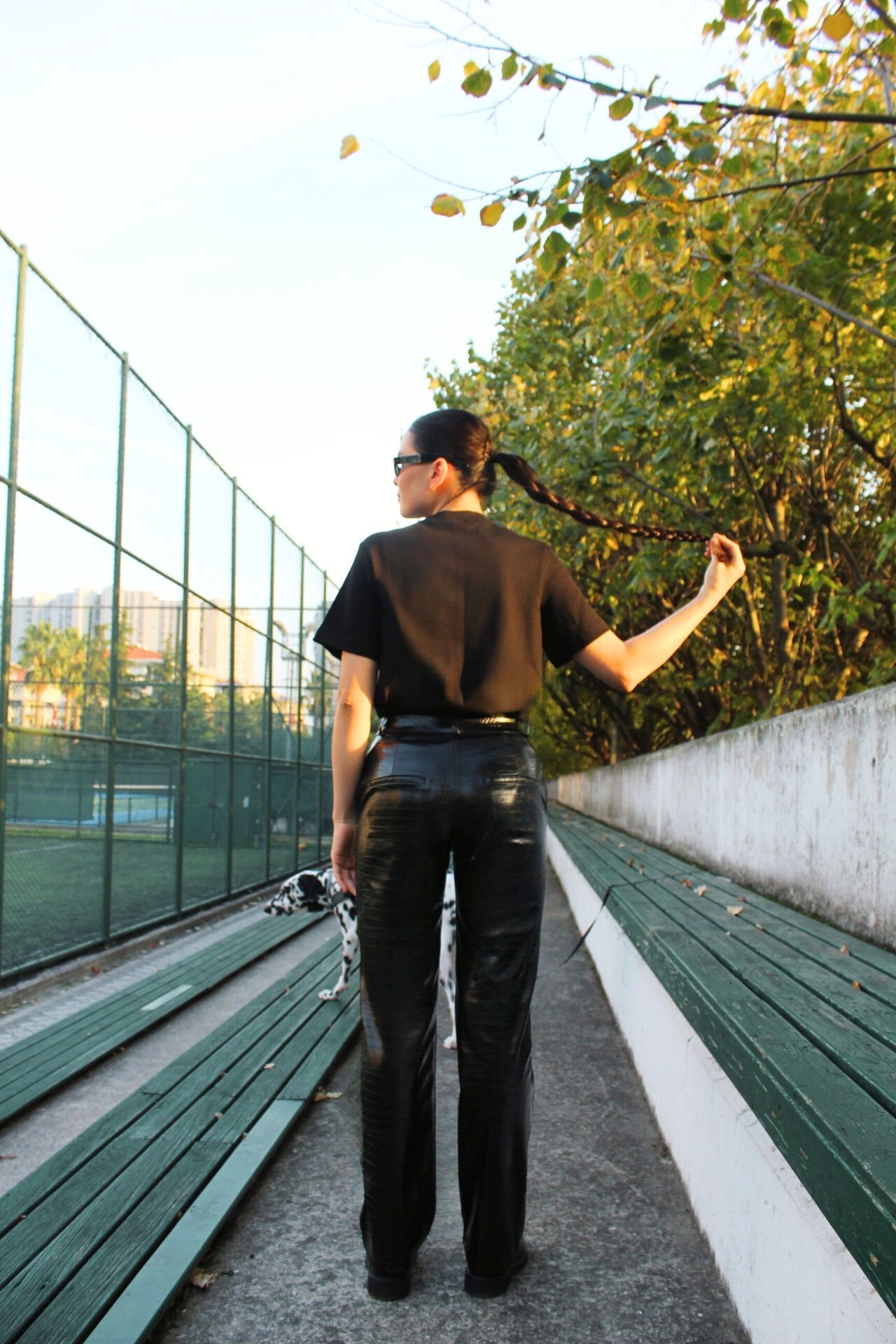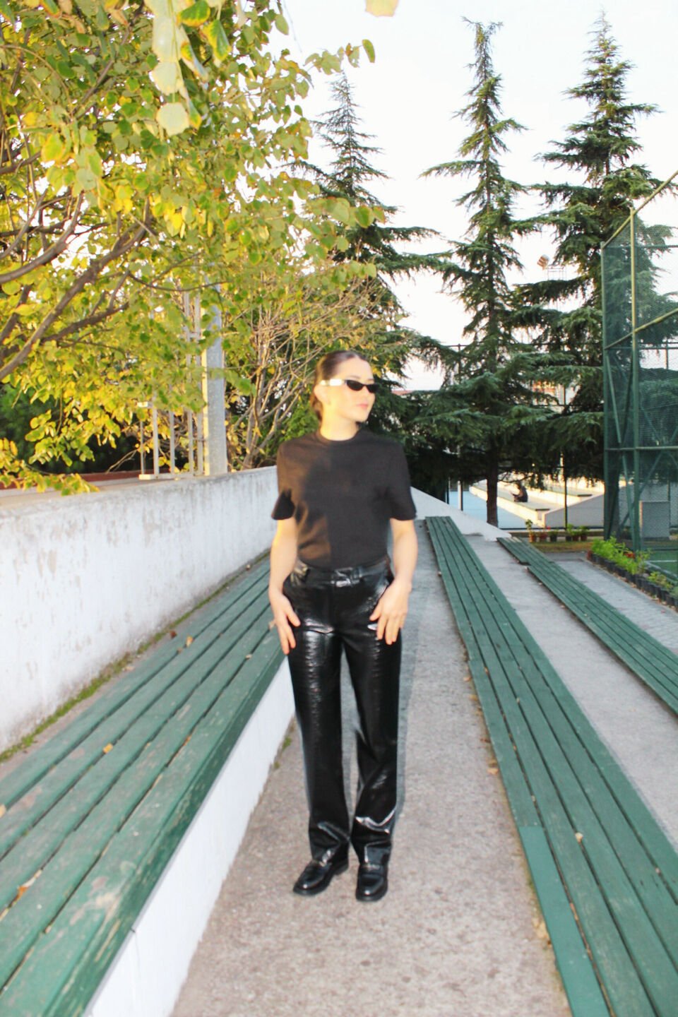Kendinden Desenli Siyah Deri Pantolon