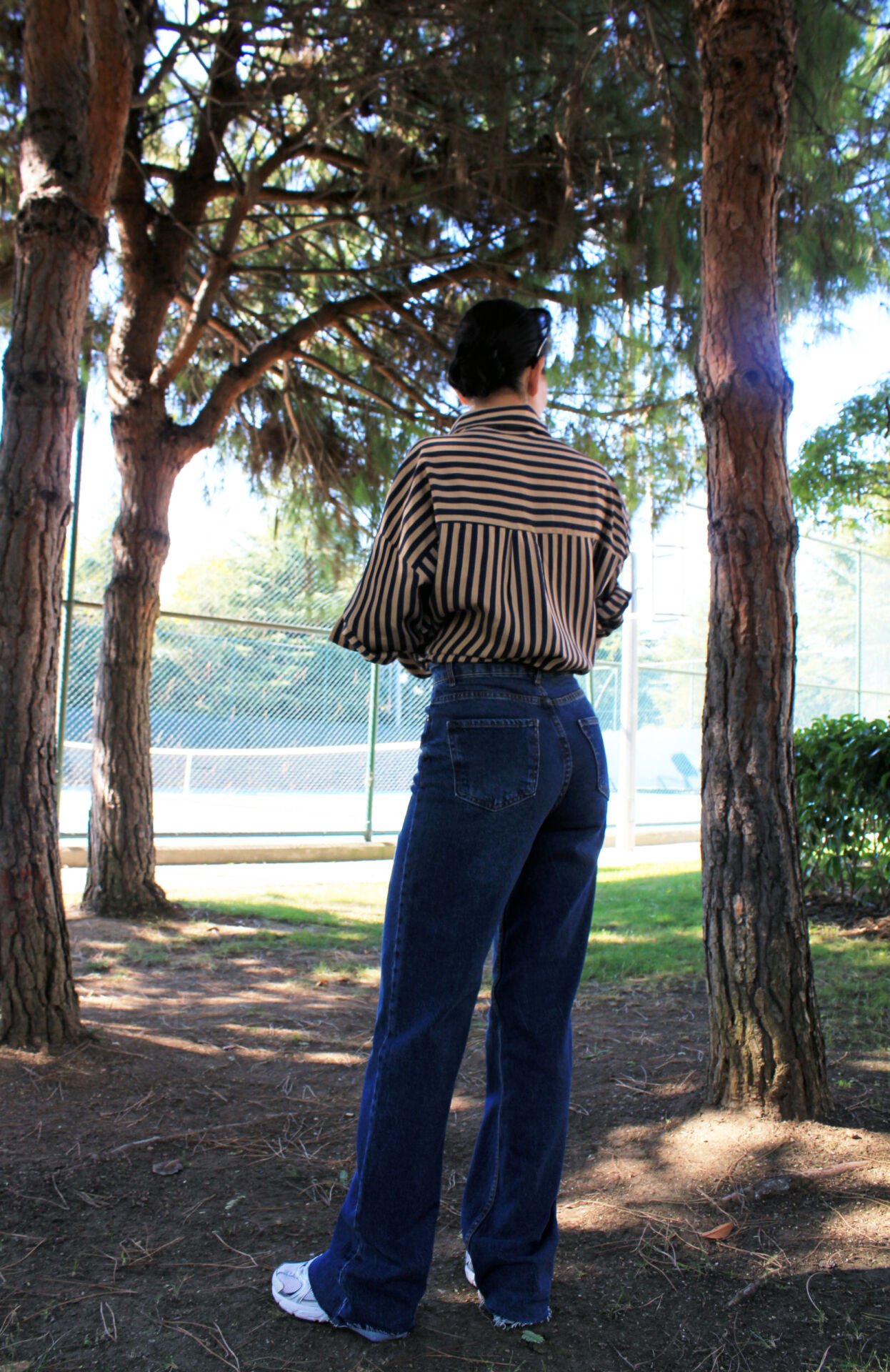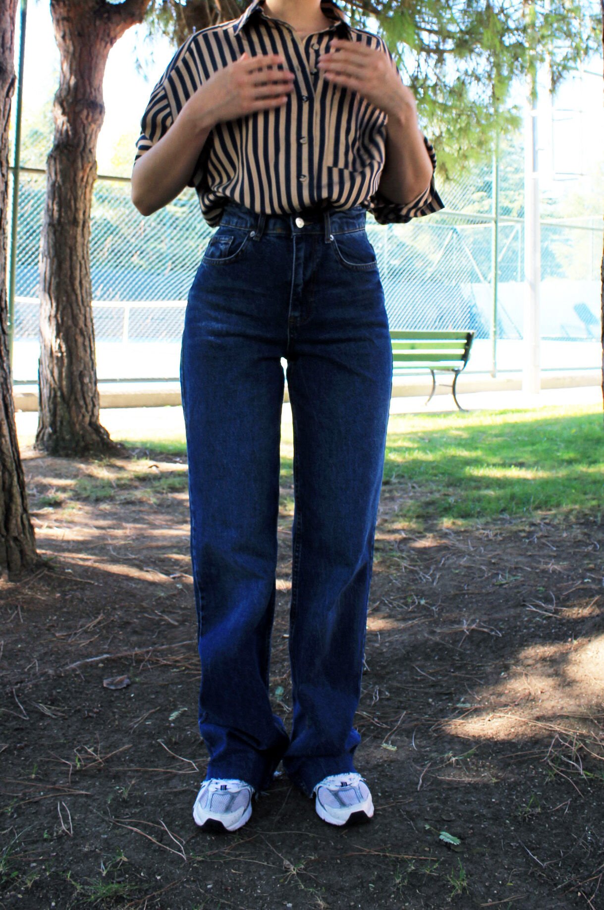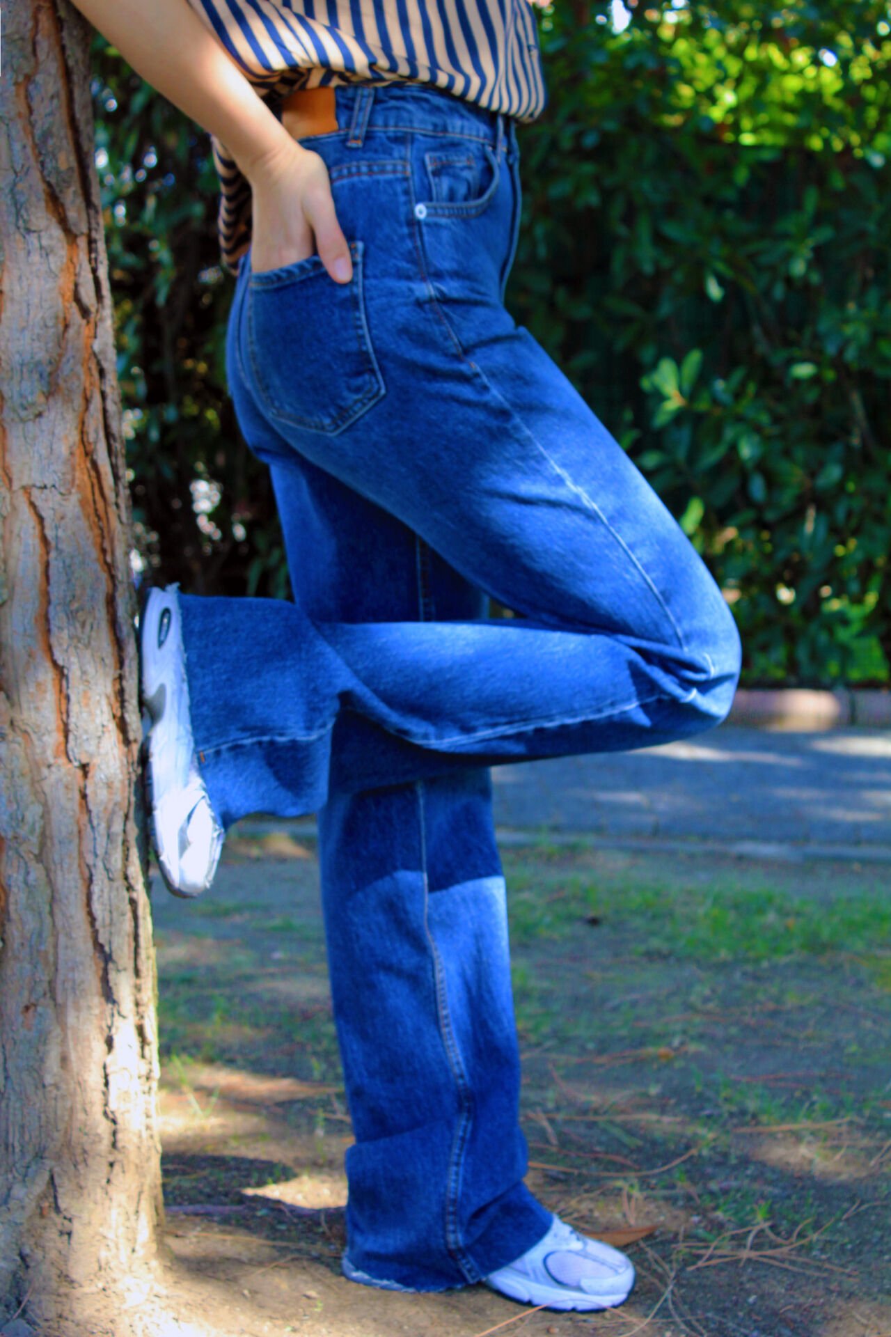 Kesik Paça Yüksel Bel Koyu Mavi Jean 42