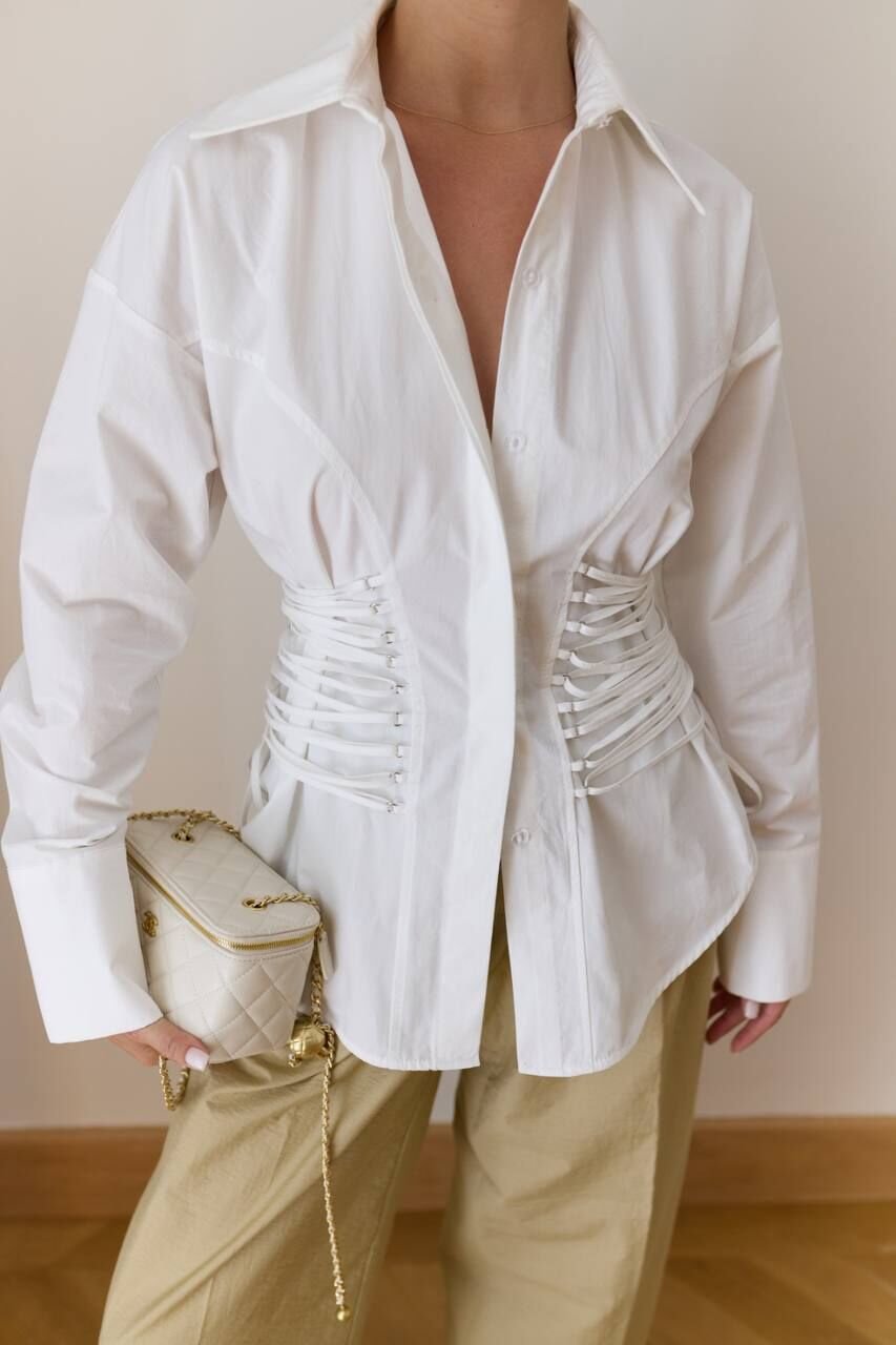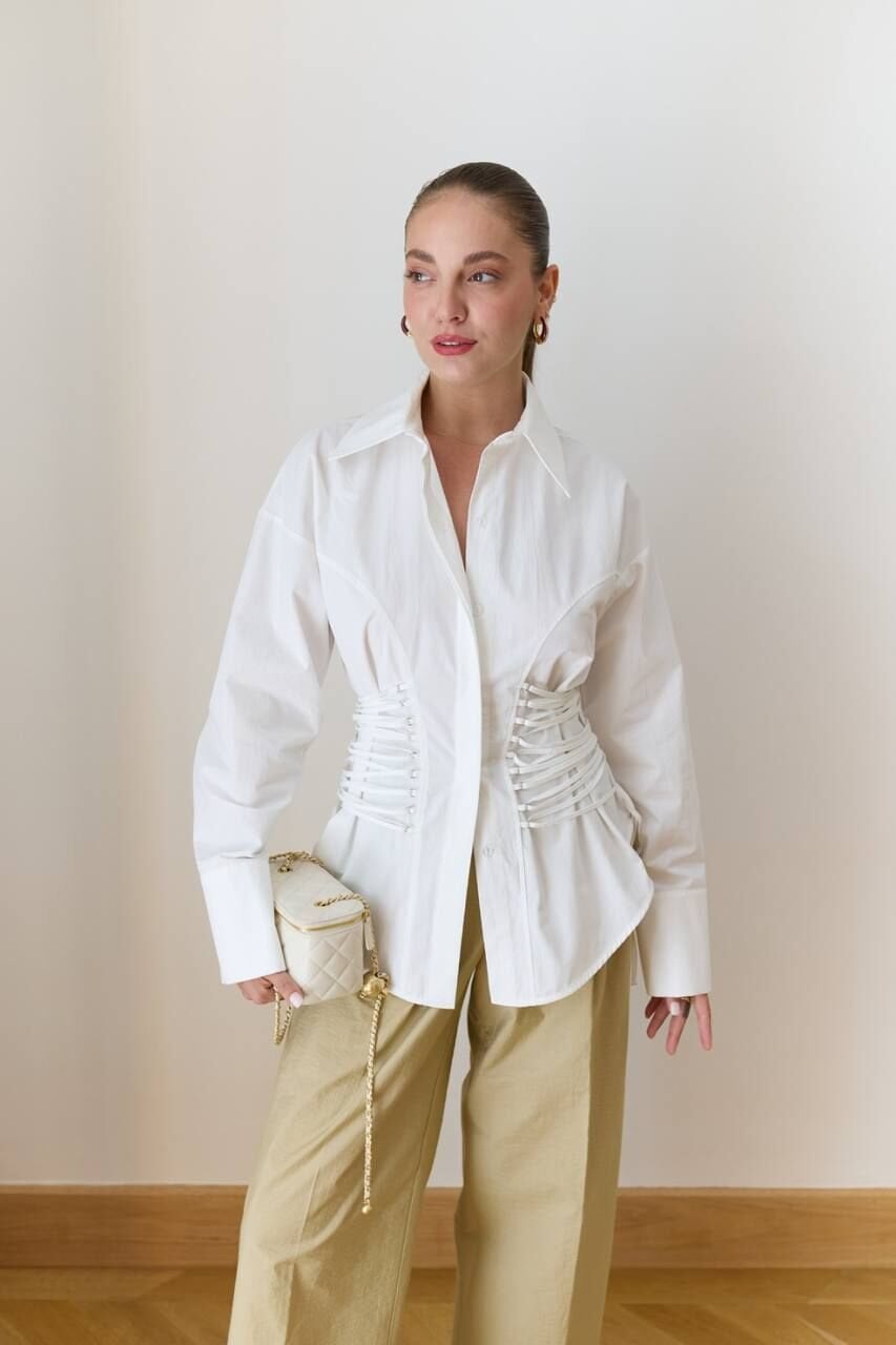 Korse Detaylı İpli Beyaz Gömlek L(large)