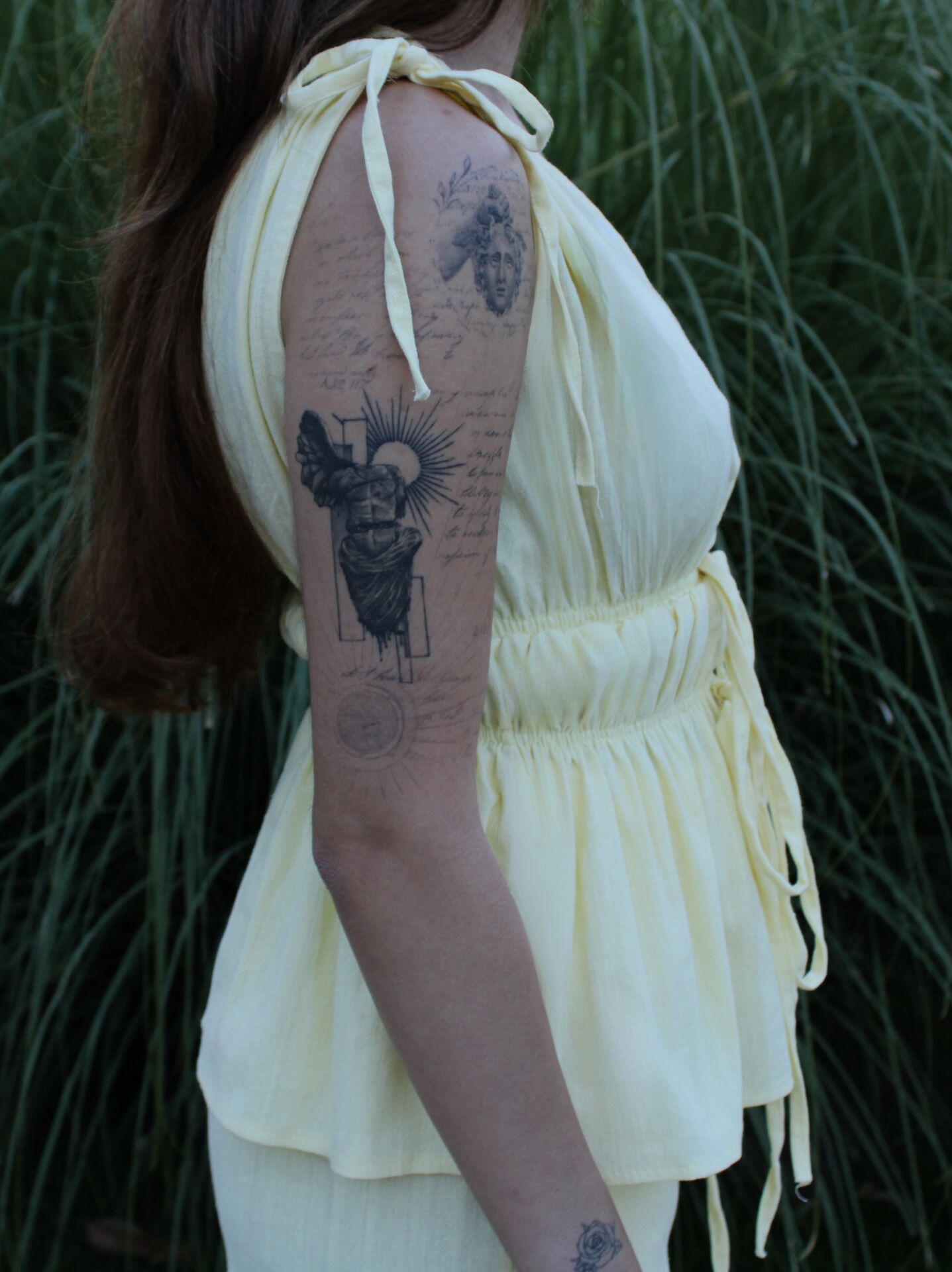 Inmuse kahverengi keten takım, şehirli kadının modern stil anlayışını, doğallıkla harmanlayarak yeniden yorumluyor. Hafifliği, nefes alan yapısı ve asil renk tonu sayesinde bu takım; sıcak mevsimlerin vazgeçilmezleri arasında yer alıyor. Gündüzden geceye uzanan kullanım alanıyla, zahmetsiz şıklığın en güçlü temsilcilerinden.
