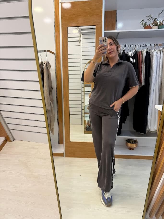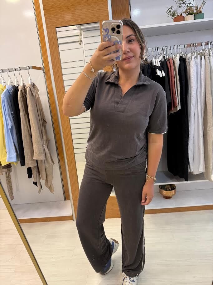 polo yaka kahverengi eşofman takım
