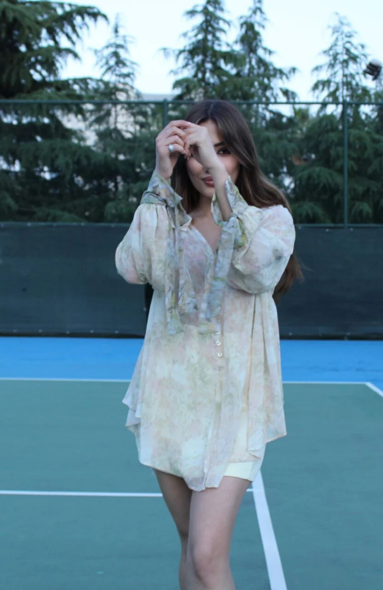 Romantik Desenli Şifon Gömlek m(medium) sfngmlk2 Romantik Desenli Şifon Gömlek m(medium)