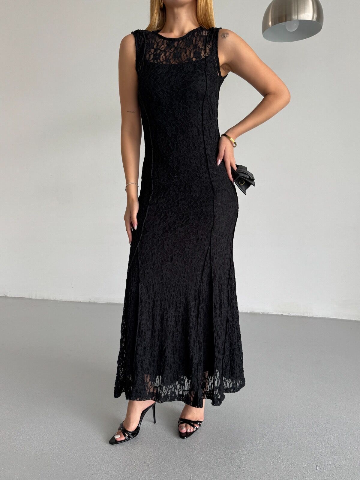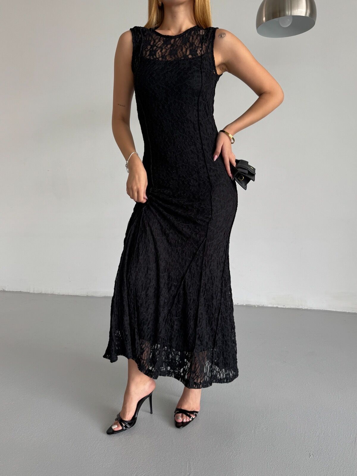 Şık dantel detayıyla romantik bir görünüm sunan siyah elbise, iç astarı sayesinde rahat kullanım sağlar. Akışkan yapısı ve hafif dokusu ile hem özel günlerde hem de günlük şıklıkta tercih edebileceğiniz zarif bir parçadır. Esnek yapısı vücuda uyum sağlayarak konforlu bir form oluşturur.